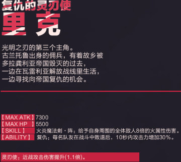 锁链战记复仇的灵刃使里克属性技能详解 来源: 飞翔小编 2014/9/10 9:33:12 浏览量:380 在锁链战记游戏中,9月10日下午14:00~16:00更新后,截至9月17日14:00活动酒馆中将添加光明之刃相关联动卡牌,包括复仇的灵刃使里克在内的五位光明之刃中的主角将于大家见面,下面给大家详细介绍下四星SR法师复仇的灵刃使里克的属性和技能。