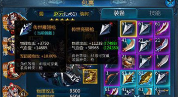 1、点击主界面“包裹”按钮,弹出如下界面,可看到当前装备已经洗练出属性,而目标装备未经过洗练。点击“属性装移”按钮进入相关操作。