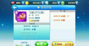 《天天酷跑》飞猪UFO怎么得 飞猪UFO属性介绍 来源: 飞翔小编 2014/9/12 9:42:29 浏览量:380 《天天酷跑》飞猪UFO怎么得?飞猪UFO属性又怎么样呢?下面就一起来看看吧。《天天酷跑》在近日开启了周年庆版本了,这次版本将会有新的装备推出,其中的飞猪UFO(紫)就是新装备之一。这个装备可以延长磁铁时间以及金币得分。飞猪UFO属性介绍:飞猪UFO获得方法:通过炫飞抽奖获得。