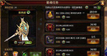 大家平时完成任意的每日任务都会得到10召唤点,可以用来召唤一个普通的神祗。只要召唤成功一次,就会获得5星魂的奖励。这是游戏中最常见的星魂来源。第二就是这星魂任务了。这些任务说实话都比较难,但是一旦达到的话奖励的星魂是非常多的。其中也有一些比较好做的,比如满足召唤次数即可获赠星魂。个人建议朋友们还是存多一点,直接在星魂任务界面兑换左侧的推荐神祗,这比你漫无目的的去抽奖会好一些,虽然比较贵。不过这里推荐的可都是真正的顶级神祗哦!比如这雅典娜,光看造型就知道有多厉害了。