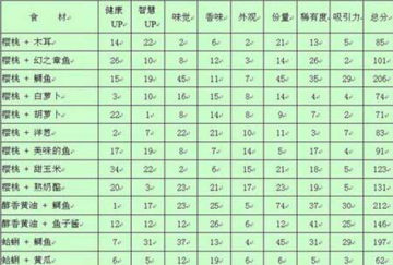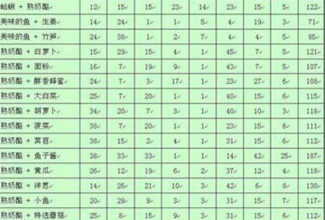 这里给大家总结了一个既省钱,又简单,强化的点数还多的强化的方法,那就是用下表中所给的配方进行“菜品”强化,即“料理菜单”→“菜单开发”。而且大部分的情况下,这种方法对“菜品”的“味道”及“魅力”都有很大程度上的提升哦,还有就是能很大程度的提供菜品的价格的。