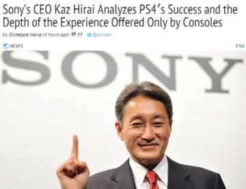 索尼总裁平井一夫表示PS4立足于分享游戏体验