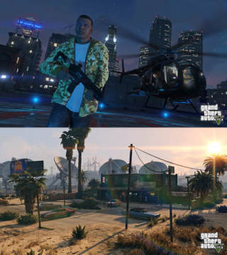 《侠盗猎车手5 Grand Theft Auto V》将于2014年11月18日登陆PS4和XBOX ONE主机,PC版于2015年1月27日发售上市,相比之前PS3和XBOX360版本,新作将有更多的武器、载具和主题活动,包含更多的野外生活内容,繁忙的日常交通状况,追加全新的植被生长系统,以及超过百首的全新音乐,升级车损和天气特效等。