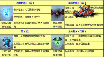 巨龙系列有冰霜、黑暗、生命等等,他们的技能相当强大,两个普通技能分别为范围进攻“吐息”、辅助技能“怒吼”,,当玩家到达25级时,推荐黑暗巨龙的黑暗战魂:敌方生命低于40%时伤害提高,打BOSS的时候绝对管用!