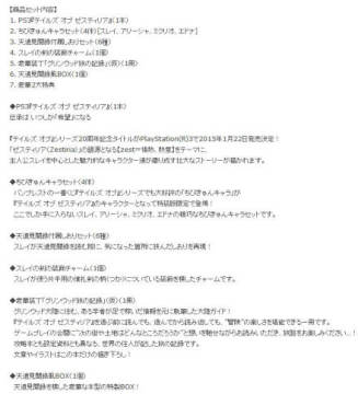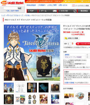 BNGI官方曝光了《热情传说》lalabitmarket豪华限定版,该豪华限定版除包含PS3游戏本体外,还将附赠四名主角史雷,艾莉夏,米库里欧,艾多娜的粘土手办,6枚天遗见闻录的书签,史雷的仪式剑的挂饰,格林伍德大陆旅行记录和天遗见闻录风格的游戏外包装,可谓相当精致,当然其售价也不菲,售价13980日元。