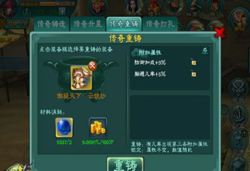 同时传奇装备重铸功能,让玩家可以让传奇装备选择自己喜欢的属性了,同时有机会获得第三条附加属性!重铸道具青金石可通过炼狱副本、通天塔60层、首领挑战-巴图鲁、侠客挑战-剑圣|段凌峰及商城获得。在重铸的基础上传奇装备打孔功能,可以获得传奇孔了,同时开放对应的传奇玉石!这样让玩家装备档次再上一个台阶!打孔道具精钢钻可通过抽奖、赠送及商城获得。