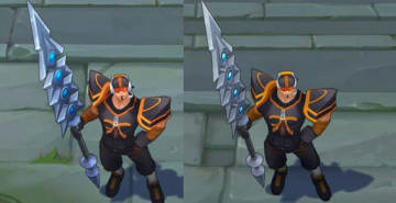 嘉文四世皮肤的武器进行了调整,银色的感觉比过去要深了。
