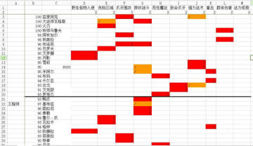 可以看到我用excel按照应对技能(横向一共10种)列出追随者后宫团的整体情况,