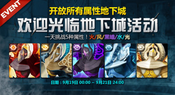 《魔灵召唤》9.19-9.21活动一览 全属性地下城开放 来源: 飞翔小编 2014/9/19 9:41:00 浏览量:383 在魔灵召唤游戏中,这个周末,9月19日-9月21日活动期间开放所有属性的守护者地下城。火/风/暗/水/光地下城全面开启,玩家可以选择所需的属性入场。 ■ 活动时间 09-19 00:00 ~ 09-21 24:00 ■ 参加方法 地下城位置:[战斗]-[卡伊洛斯地下城 开启的地下城:火/风/黑暗/水/光属性