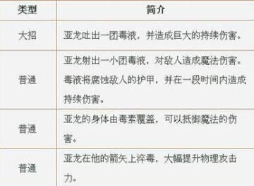 亚龙大招技能持续伤害很高,为Boss战量身定做的技能;毒球为核心减甲技能,持续时间长,配合其出手顺序,完美输出;皮肤遭到多人吐槽,我认为则不然,亚龙站位在白虎之后,后期团本Boss均带有AOE技能,皮肤能最大限度提高毒龙的生存能力;毒箭增加物攻,先减甲后普攻的输出模式成型。亚龙的技能攻很给力,技能的持续伤害傲视群雄。