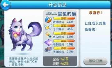 星星的喵是吃到任意道具产生炸鸡和啤酒,这对于刷分那是相当给力啊!不过这个技能比较不好的一点就是,前面的道具比较多,自然刷分就比较好。但是一旦到了后面的话,道具比较难得到的情况下的话,那么星星的猫这个技能就不怎么样了。