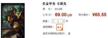 lol圣金甲虫卡兹克皮肤多少钱 圣金甲虫卡兹克皮肤购买地址