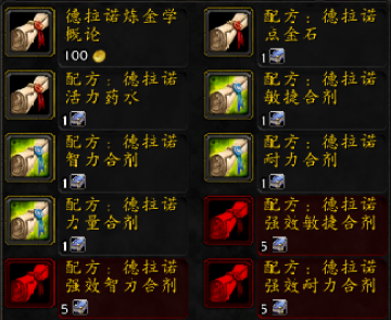 可以给我提供一个便捷的得到用于换取配方的德拉诺炼金秘术的生产指令