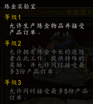 比如我新建的炼金实验室,1级的时候可以学习炼金术的一些配方和下达生产订单,2级的时候就可以安排一名拥有炼金术技能的追随者进行特殊生产,并肯于同时能下达3种不同物品的订单,在3级的时候更是可以把下达不同物品的订单数量提升到5级。