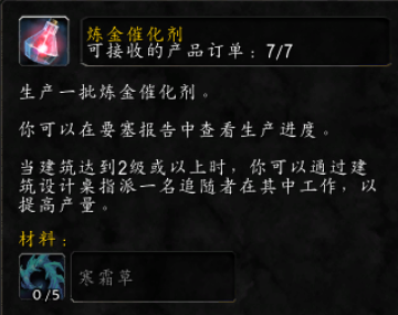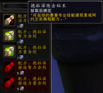这个配方生产出来的德拉诺炼金秘术可以用于在要塞的生产建筑里换取新的配方