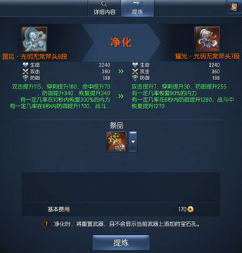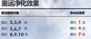 可将噩运装备净化为特定段位的耀光装备。不同等级与段位的装备,所需的道具种类和数量也不同。