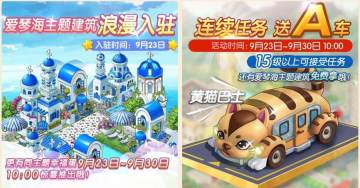 活动规则:爱琴海之旅正式起航,第一季精彩建筑已经上架,爱琴海图书馆、假日帽摊、珊瑚邮筒、爱琴海盆栽、海蓝路灯、爱琴海民居、爱琴海地砖、海风帐幔、白色九重葛、紫色九重葛、爱琴海圆亭、爱琴海橄榄树,用魅力和轻松点缀你的小镇吧!