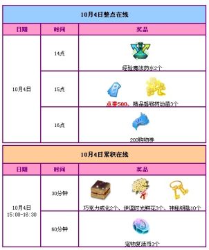 10月4日15点在线即可获得500点券。