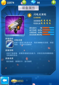 在全民飞机游戏中,国庆版本推出了全新的装备系统,新版本中推出了强力武器闪电光束枪,下面给大家详细介绍下闪电光速枪的属性和技能。