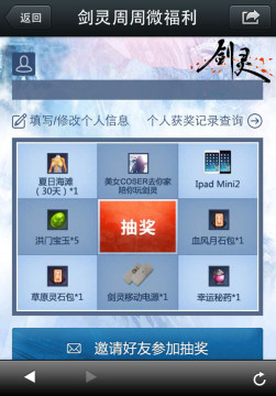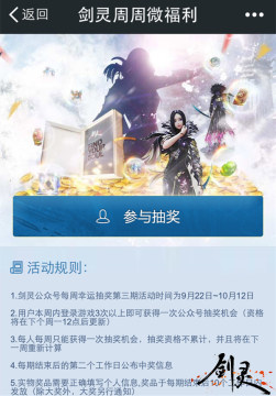剑灵每周微信抽奖活动介绍