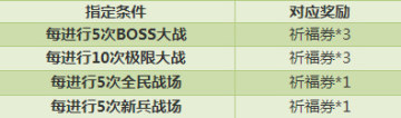 活动期间,达到指定条件,即可通过邮箱获得祈福券奖励,全部不限完成次数噢!