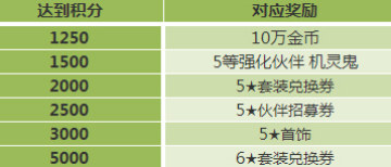 金币*88888 + 5★伙伴招募券 + 5等强化伙伴机灵鬼