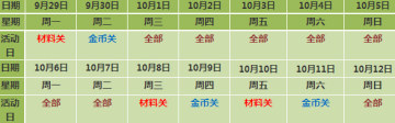 特别关卡活动在10月1日至10月12日期间的开放时间安排如下(其中国庆七天假期全部开放哟):