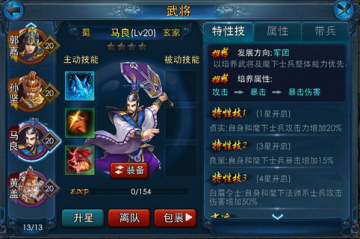 在主公莫慌游戏中,9月29日下午更新完成后,将推出紫色玄家型将领马良,马良是后排输出型军团武将,特效技能无不适加军团攻击力、攻击伤害、暴击,下面给大家详细介绍下马良的属性和特性技能。