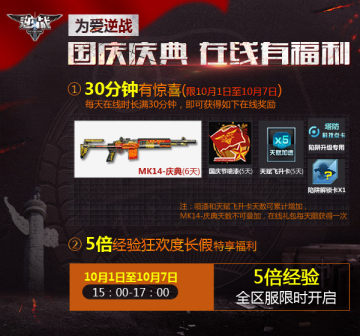 还等什么,只要国庆在线30分钟就能获得MK14-庆典,千万不要错过!