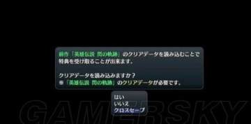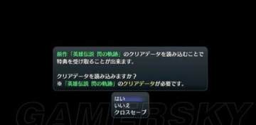 继承方法:「闪之轨迹II」NEWGAME→难度选择→出现通关数据读取确认画面(参照下图),选择读取[通关存档]即可。