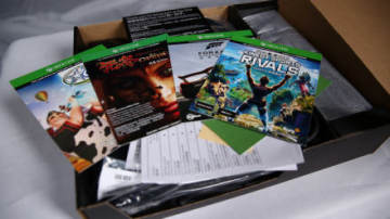 微软XBOX ONE国行主机在今天9月29日正式发售,国内游戏媒体A9VG对国行主机进行了开箱评测,从评测视频里可看出此次测试的是售价为4299人民币Day One限定版,其中有《Kinect运动冠军 对手》、《极限竞速5》、《无冬Online》和《明星高尔夫》的下载码,可通过Kinect直接扫描兑换。