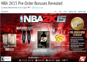 《NBA 2K15》预购特典公布 附赠杜兰特MyTeam新秀卡