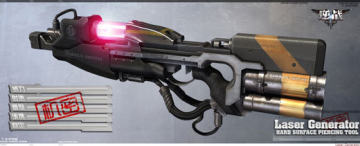 盖迪奥斯矿冶分部研制的手提式等离子体发生器,科学家们原本希望用它来炸开坚硬的矿脉岩石。但等离子体接触空气形成的巨大爆炸当然有其巨大而广泛的军事用途。现在前线的战士们都叫它“射线枪”,“激光触媒等离子体发生器”这个原本的名称却逐渐被人们淡忘。