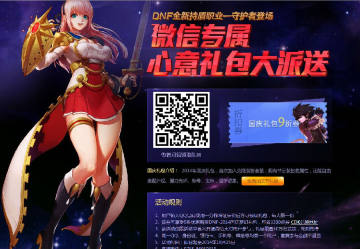 在DNF游戏中,微信专属心意礼包大派送活动开启了,现在玩家只需要使用手机扫描微信二维码即可到官方指定网站领取国庆礼包9折券一张,9折入手2014国庆礼包,下面给大家详细介绍下活动内容。