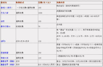 对比目前比较热门的点卡消费类游戏,小编做了简单的整理: