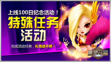 在魔灵召唤游戏中,为纪念游戏上线100日,特推出100日纪念特殊任务活动,完成活动任务,礼物送不停,下面给大家详细介绍下此次活动的内容。