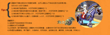 9月30日-10月8日活动期间,全区全服玩家只要每天登录游戏并完成当天的任务,次日均可获得当天对应的礼物。送祝福,刷副本,花样任务让你的游戏假期更加充实。更有超丰富礼单,让小伙伴们合不拢嘴。炫酷翅膀、珍贵道具、银币豪礼,天天都是新惊喜!10月4日-10月8日期间,《龙之谷》每天还将会在所有完成当天任务的玩家中,随机抽取不同数量玩家,赠予国庆礼物,永久翅膀、龙币商品券、钻石潘多拉等更多重磅礼物等你幸运赢取!