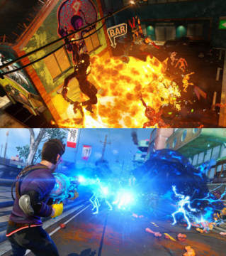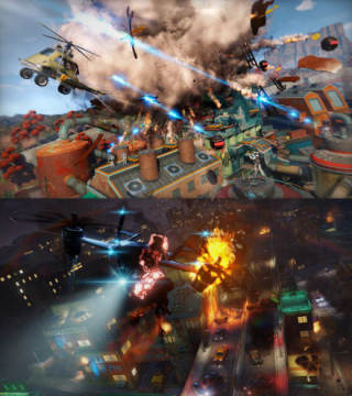 微软XBOX ONE动作射击游戏《日落过载Sunset Overdrive》日前曝光了多张实机截图,虽说该作仅有900P分辨率,但游戏的画质效果却十分惊艳,各类色泽绚丽多彩,人物面部表情也刻画得惟妙惟肖。