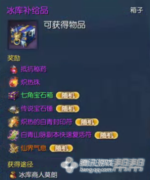 寒气珠*1+5G可以兑换冰窟补给品,开启该物品可以获得1个炽热珠加上一些其他的随机奖励炽热珠可以通过拍卖行进行交易