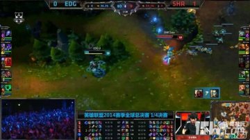 14分钟,EDG追击中击杀皇族辅助风女,遭遇皇族支援反打,老鼠击杀EDG四人获得四杀。