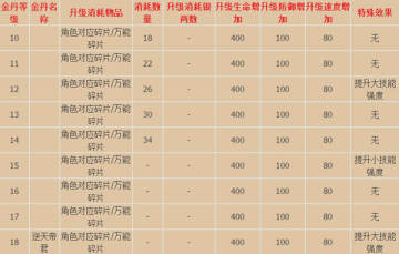 10~18级金丹系统需要消耗角色对应碎片或万能碎片来进行等级的提升。