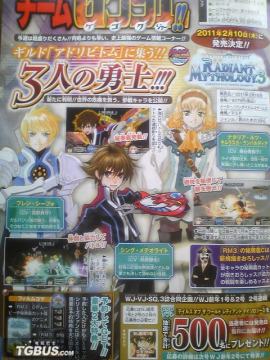 BandaiNamcoGames预定于2011年2月10日发布销售的PSP游戏《世界传说:灼烁神话3》,在今日公布的Fami通杂志上面说明了游戏的最新消息,不过一些也是之前Jump所说明过的老消息了,下面就来看看新消息的简介吧。