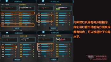 首先大家看到的是MK14-庆典与神兽类武器的机械数据比较就威力方面而言,其威力大于玄武与Z步枪与朱雀的威力相同但威力小于AK-白虎,但MK-14庆典的的射速却恰恰与玄武相同,高于朱雀与白虎与Z步枪持平,而33发的载弹量虽然不及36、35发的有安全感,但是仅仅少的2-3发子弹,相信对于对弹夹子弹余量有一定控制的玩家,这些都不是问题,下面我们来看看MK-14庆典与其他永久武器的机械数据比较。