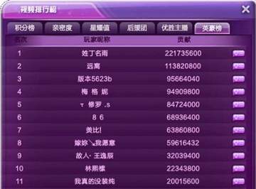 将本届比赛中,为主播贡献攻击力+防御力的总值最高的前12名个人玩家,展示在排行榜中。