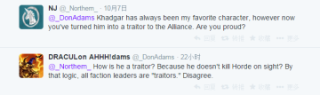 A:他怎么会是叛徒?因为他没有在一看到部落的时候就痛下杀手?按照这种逻辑,所有的阵营领袖都是“叛徒”。我不同意这种说法。