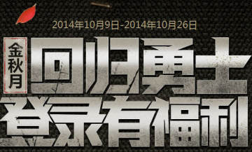 《逆战》将于2014年10月9日至10月26日开启回归勇士登录有福利活动,已有14天未登录过游戏的玩家即为回归勇士在活动期间登陆可领取PVE和PVP礼包,此外当日登录游戏并游戏时长满30分钟,即可获得当日抽奖机会1次,有极品武器可以获得,这里给大家分享下《逆战》2014年10月回归勇士登录有福利活动介绍,领取礼包抽奖地址一览。