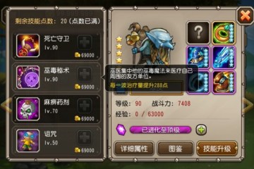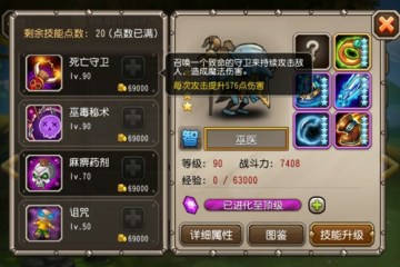 1、死亡守卫:召唤一个致命的守卫来持续攻击敌人,造成魔法伤害。小编用手中的2星巫医做了一个简单的测试,死亡守卫持续攻击的波次大约在8波左右,期间巫医会持续释放,被控制技能打断。伤害并没有大家在dota中感受得那么强烈,尤其是输出在前排身上,但是由于巫医的站位非常出色,如果残局开大打出伤害或者2次开大,对于中排低魔抗的一姐、月骑、白虎等英雄的伤害还是很可观的,具备完成收割的能力。