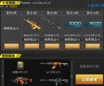 逆战10月签到活动从10月1日开始正式开启,这是逆战的每月活动,玩家只要累计签到即可领取好礼,还可以参与抽奖哦。逆战9月签到活动主要比上期更新了奖励物品,活动方式不变,1000NZ点购物券、烈焰战魂(6天)等奖励等你来拿哦,下边小编为大家介绍获得详细!