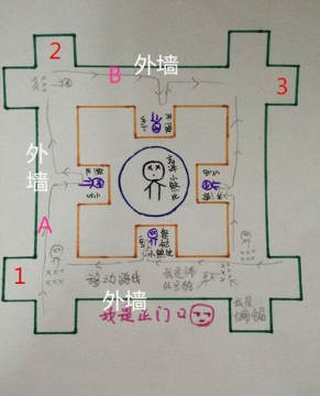 方法同打狗二号一样,打完祭祀以后站在图片标注B的地方,等狗再次进入祭祀站的方块里以后,依旧贴着外墙的直线走过去,站在标注3的位置等待煞比狗四号。方法依旧如上,打死祭祀以后,你就可以直接去撸狗了。狗都撸死了以后,就可以跳下去欢快的打祭祀了。