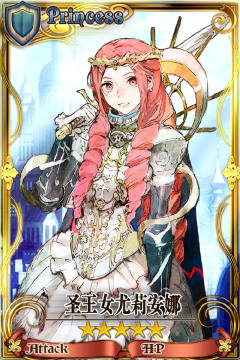 在锁链战记游戏中,昨日更新后,酒馆上架了五星SSR骑士圣王女尤莉安娜,截至2014年10月15日下午14:00,圣王女出现率为其他SSR3倍,下面给大家详细介绍下圣王女尤莉安娜的属性和技能。